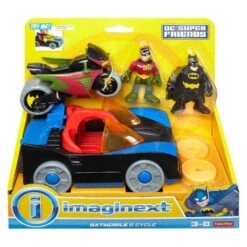 Fisher Price – Imaginext – Batmóvil y moto DC Super Friends, un set de Imaginext con Batman, Robin y sus vehículos.