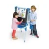 Un tablero de actividades dividido por zonas de colores con distintos pestillos que ayuda a los más pequeños a desarrollar sus habilidades motrices y su destreza.